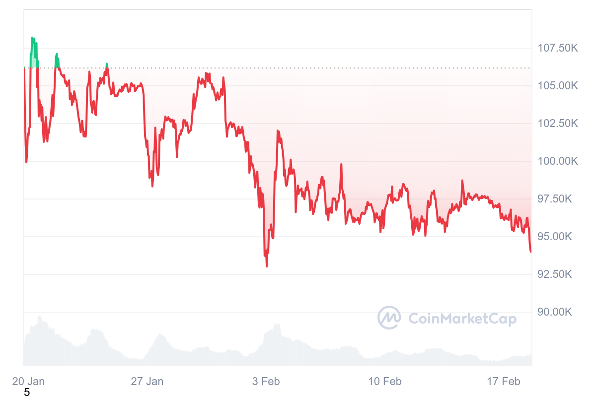 Même avec une nouvelle secousse journalière qui a provoqué une perte de 1,50 %, le résultat annuel est un gain de 0,69 % pour le BTC. D’ailleurs, si l’on se focalise sur le mois dernier, redescendre vers les 90 000 $ n’est pas une première. Le cours du Bitcoin a fait vivre des moments de frayeurs à ses investisseurs en début de mois de février. Après cela, le BTC avait réussi à redépasser les 100 000 $.