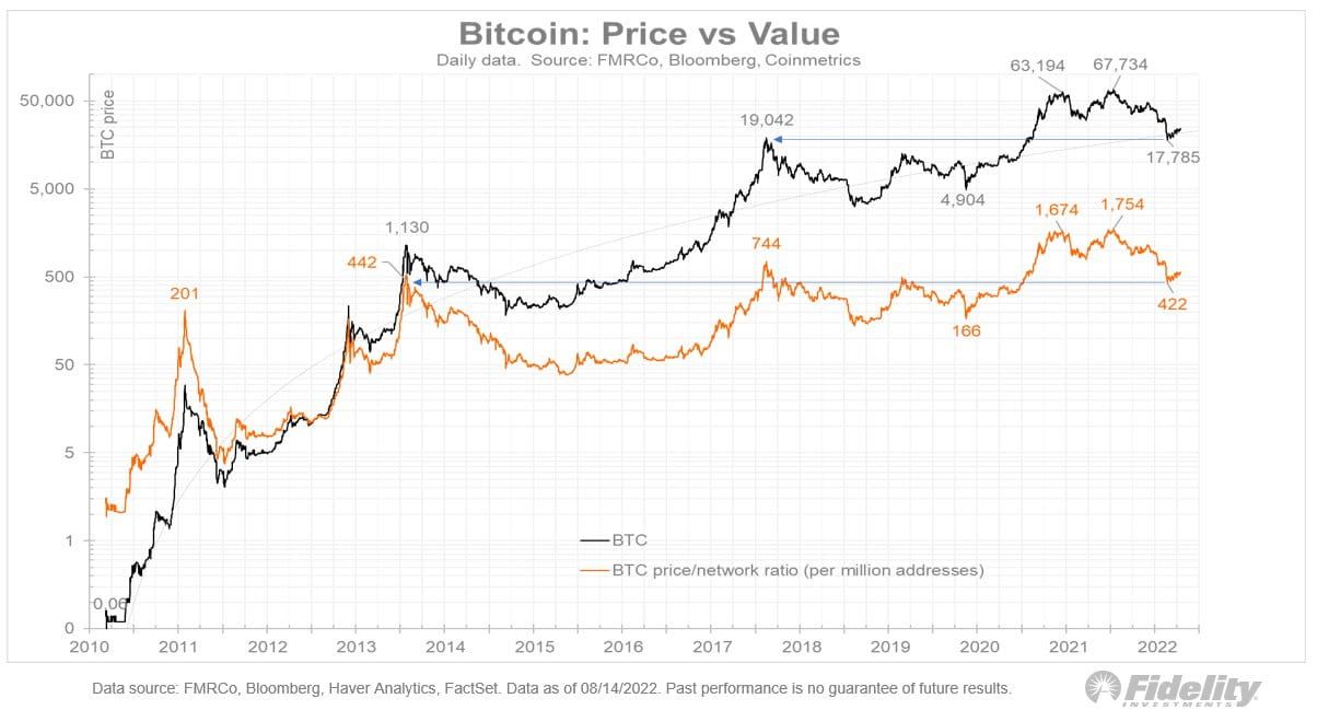 En effet, alors que le réseau BTC a continué de croître progressivement, Timmer explique que le rapport prix/réseau de Bitcoin est de retour à des niveaux de 2014. Ce qui ferait que le prix actuel du BTC est largement sous-évalué actuellement par rapport à sa valeur réelle.