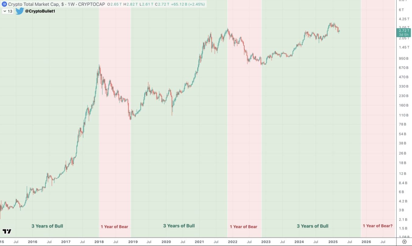 Les investisseurs se sont fait du mauvais sang ces derniers mois avec une altcoin season… qui n’est pas encore arrivée. Malgré tout, pour les investisseurs qui croient encore en la cyclicité des cycles haussiers du Bitcoin & de la crypto, les opportunités seraient encore devant nous. Comme le montre CryptoBullet, la temporalité du bull market n’est pas encore terminée.