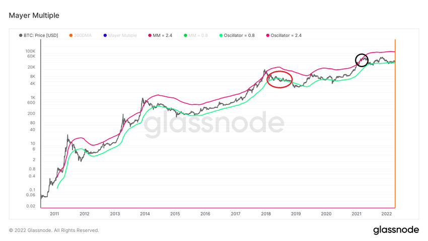 Le multiple de Mayer est un indicateur on-chain de Bitcoin. Il utilise le rapport entre le cours du BTC et sa moyenne mobile (MA) sur 200 jours, ce afin d’en déterminer la tendance.