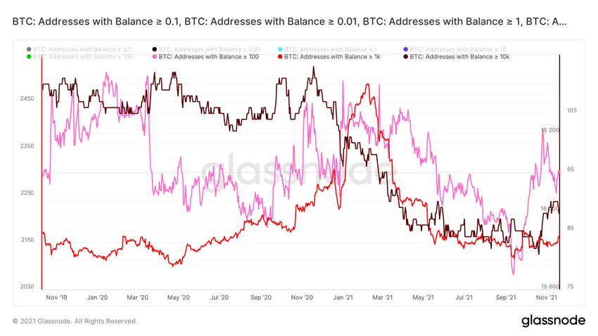 Cependant, une analyse des comptes détenant entre 1 BTC et 100 BTC offre une image différente.