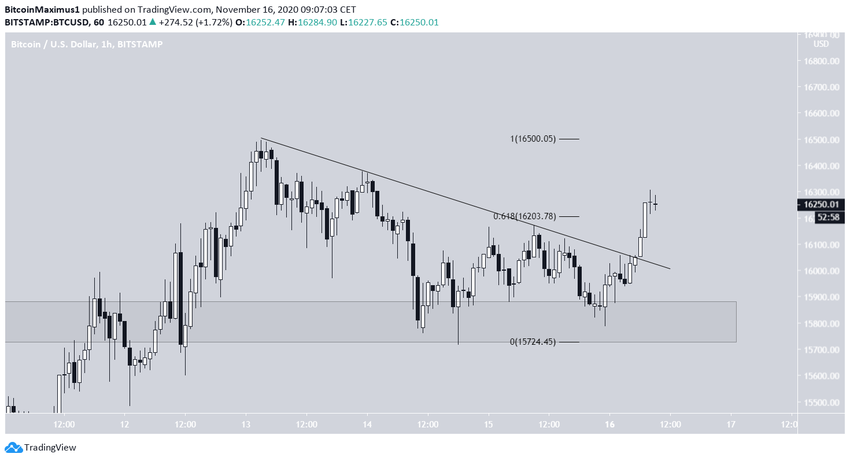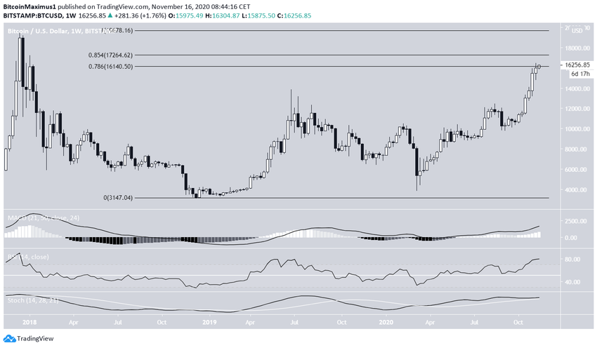 Le cours de Bitcoin (BTC) s’est accentué de manière progressive durant la semaine du 9 au 16 novembre. Bien qu’il ne soit pas parvenu à clôturer au-dessus des 16 000$, il est redescendu afin de valider la résistance récemment dépassée en tant que support et s’est ensuite mis à remonter.
