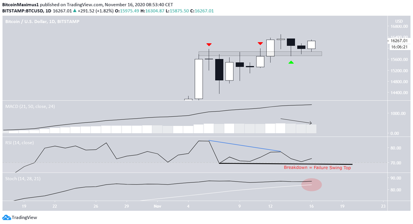 Tant que le BTC se négocie au-dessus de la zone des 15 800$, laquelle est maintenant convertie en support, la possibilité d’une continuité haussière reste élevée.