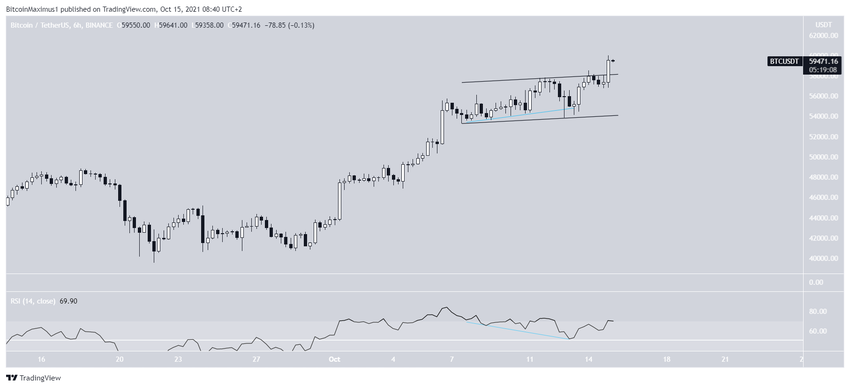 Le graphique sur six heures montre que le BTC a dépassé un canal parallèle ascendant.