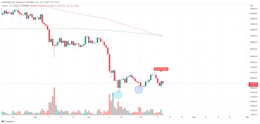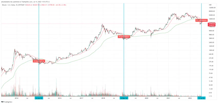 À la fin du mois dernier, Be[In]Crypto a présenté une analyse, selon laquelle l’indicateur de plancher de cycle Pi était censé se manifester le 9 juillet. Finalement, cela s’est produit le 13 juillet, lorsque Bitcoin a chuté au niveau de 18 900 $.