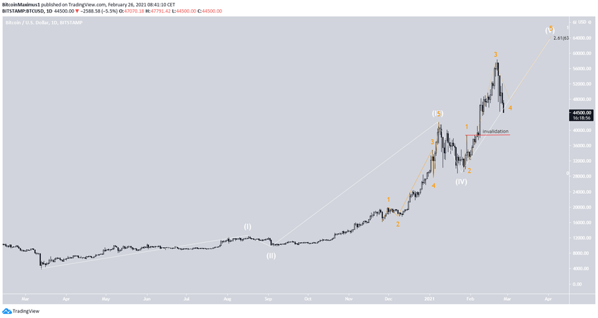 Le décompte de vagues de plus long terme suggère toujours que la tendance du BTC est haussière, et que le cours finira par atteindre un autre sommet.