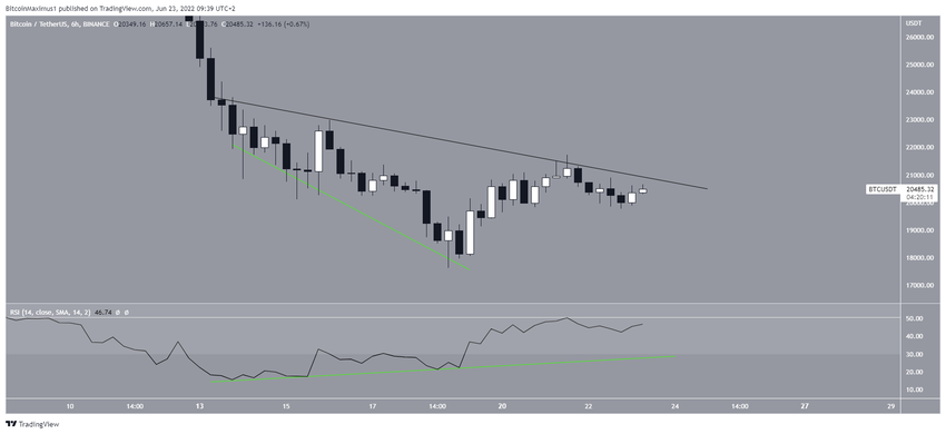 Le BTC suit également une ligne de résistance descendante et a jusque-là tenté de la dépasser à trois reprises.