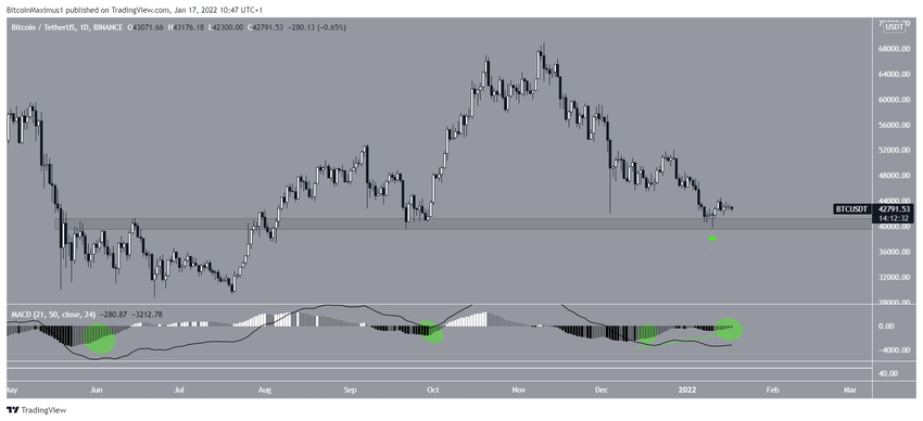 La dernière fois que la MACD est passée en territoire positif (cercles verts), cela a entraîné une considérable hausse du cours de Bitcoin.