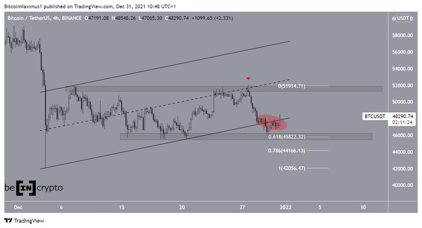 Le BTC était en déclin depuis son sommet local à 52 088 dollars du 27 décembre (flèche rouge). Le mouvement de déclin s’est prolongé jusqu’à un creux de 45 900 $, atteint le 30 décembre.