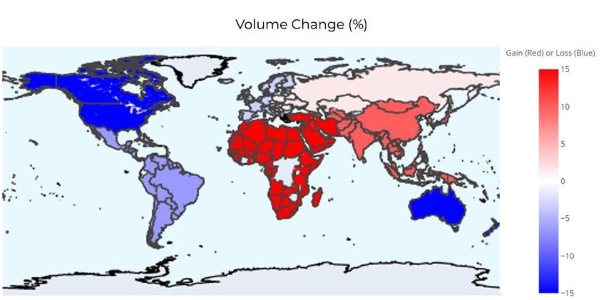Les données de UsefulTulips montrent que l’Afrique est le continent qui connaît la plus forte croissance du volume d’échange de bitcoins – ce qui montre que le marché des cryptomonnaies réalise de véritables percées dans le monde entier. Au cours des six derniers mois, la plupart des pays africains ont enregistré une augmentation de 15 à 30 % du volume des transactions en BTC. À titre de référence, l’Amérique du Nord a connu une baisse de 18 % du volume des échanges.