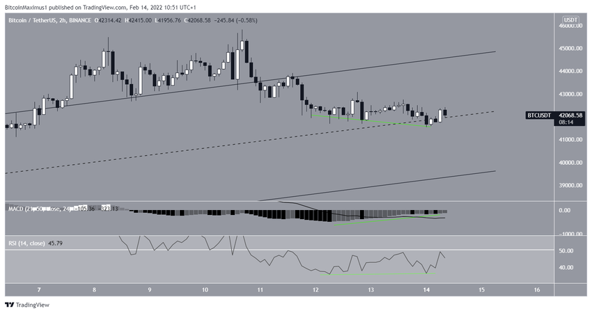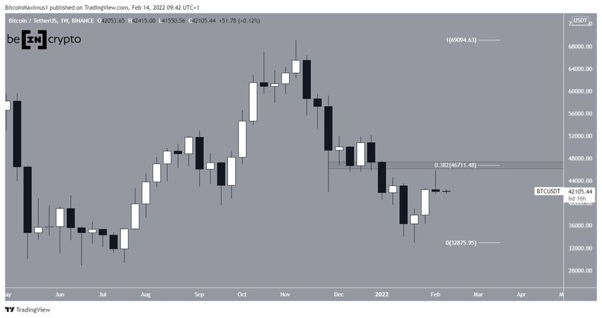 En mesurant l’ensemble du mouvement de baisse, le sommet local de 45 821 $ BTC se trouve très proche du niveau de résistance de retracement de Fibonacci 0,382 à 46 700 $, qui est également une zone de résistance horizontale.