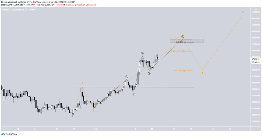 Le prochain objectif le plus plausible se trouve entre 50 300$ et 52 00$. Cela dit, en raison du développement du décompte de sous-vagues, il est moins probable.