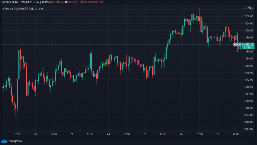 Il est retombé à 1 872$ le jour suivant, mais a ensuite fortement augmenté pour atteindre 1 910$ le 26 mai. Cependant, au cours du dernier jour et demi, il a chuté à environ 1 890$, où il se situe actuellement.