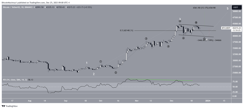 Si le décompte est correct, le BTC diminuera jusqu’au support le plus proche, à 40 000 $, et terminera sa correction avant de se déplacer vers la résistance suivante à 50 000 $ pour compléter son mouvement de hausse.
