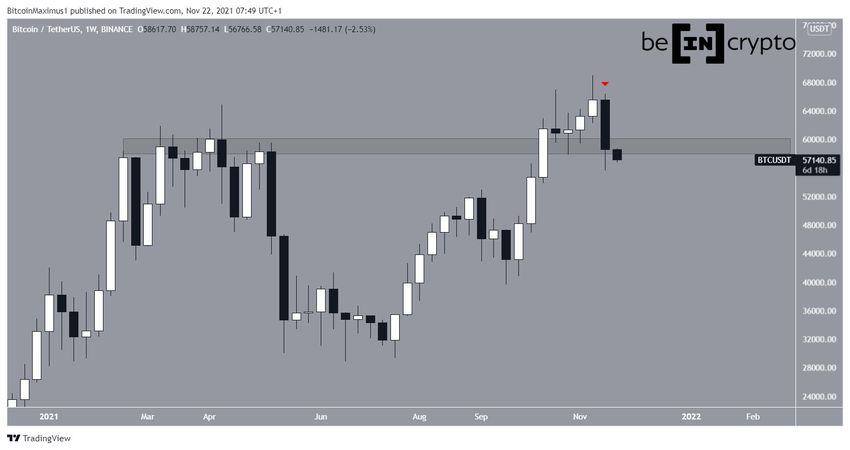 Le 19 novembre, Bitcoin a rebondi à cette zone de support (flèche verte) et se trouve actuellement en train de la tester une nouvelle fois.