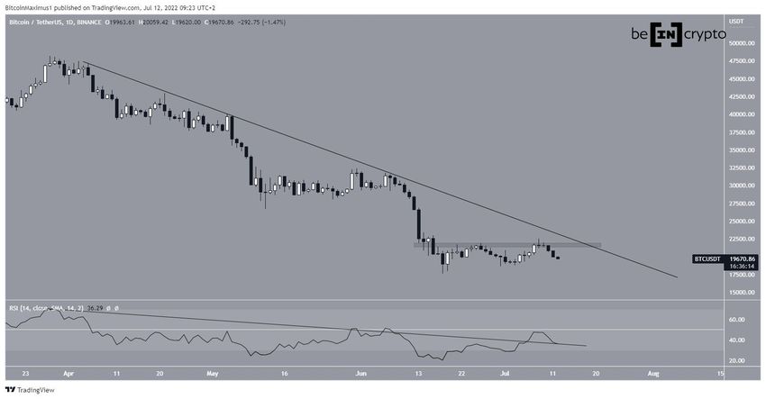 SponsoredBien que le cours se soit ensuite légèrement accru, il a été rejeté par la zone de résistance horizontale des 21 700 $. Ensuite, il n’a pas réussi à atteindre la ligne de résistance susmentionnée.