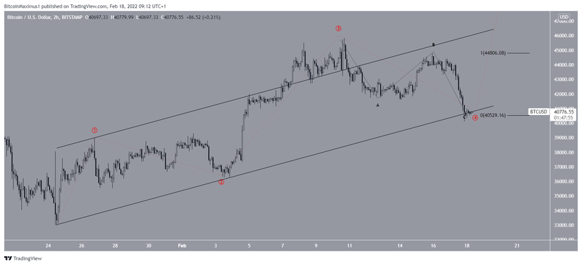 En raison de la baisse du 17 février, la possibilité que la hausse de Bitcoin, amorcée le 24 janvier, constitue un mouvement ascendant en cinq vagues, se trouve maintenant sérieusement menacée.