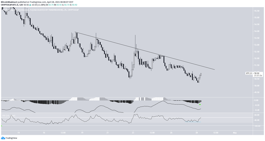 Le taux de domination de Bitcoin (BTCD) montre également des signes de revirement. La MACD et le RSI sont en hausse, ce dernier ayant également généré une divergence haussière.