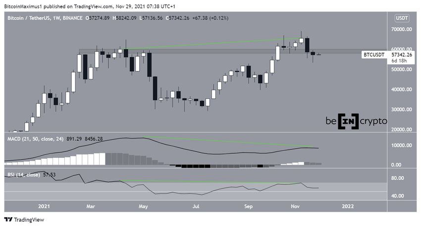 Le BTC a créé un chandelier haussier après avoir rebondi à la zone de soutien de 53 250 $. Il s’agit d’une zone de support horizontale ainsi que du niveau de support du retracement de Fibonacci 0,5.