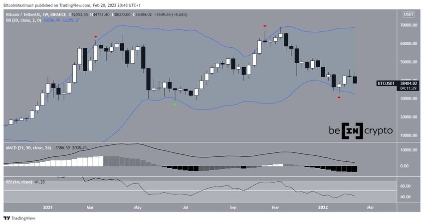 Sur le versant plus haussier, le BTC est passé sous la bande de Bollinger le 24 janvier. Dans le passé, les déviations du cours sous cette bande (flèche verte) ont mené à de considérables revirement haussiers de la tendance de Bitcoin, et inversement.