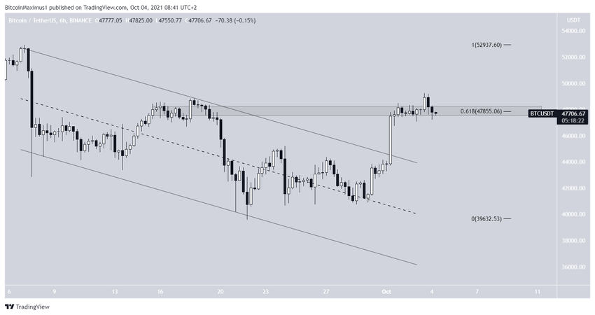 De plus, on peut voir que la résistance susmentionnée des 47 850 $ correspond également au niveau de résistance du retracement de Fibonacci 0,618 de l’ensemble de la baisse.