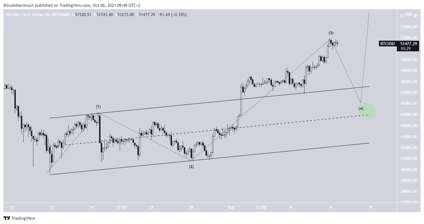 Enfin, le graphique sur deux heures montre que le BTC a dépassé un canal parallèle ascendant et l’a ensuite validé comme support (flèche verte).
