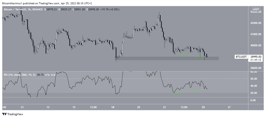 Malgré cela, Bitcoin évolue toujours au-dessus d’une ligne de support ascendante en place depuis mai 2021. Cette ligne est actuellement proche de 38 000 dollars.
