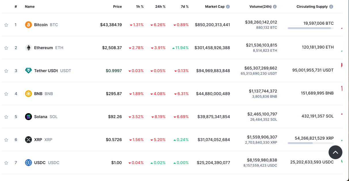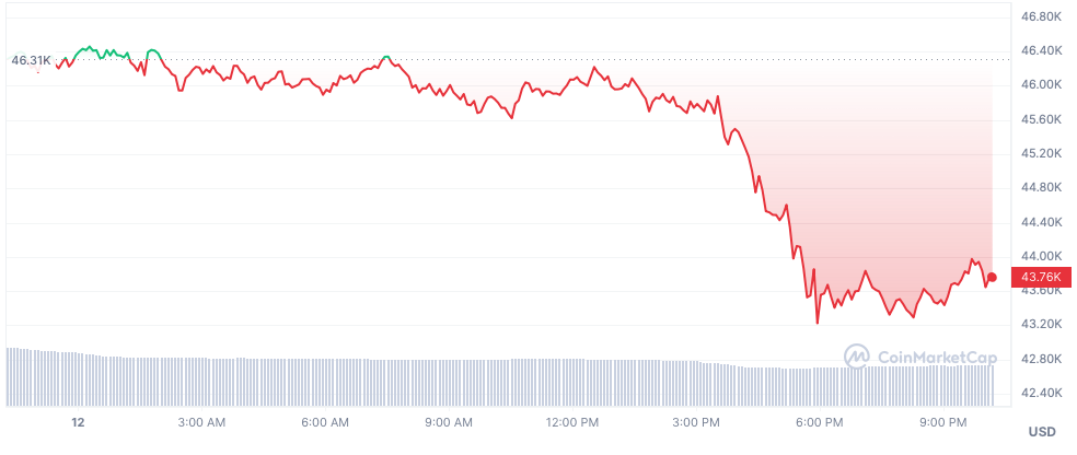 Le Bitcoin ne semble pas bien réagir au contexte d’approbation des ETF, malgré une augmentation soudaine à 48 800 dollars. Depuis, la valeur de la monnaie n’a cessé de diminuer. Ce vendredi, le Bitcoin a ainsi chuté à 43 340 dollars, marquant une baisse de 6,26% en 24 heures.