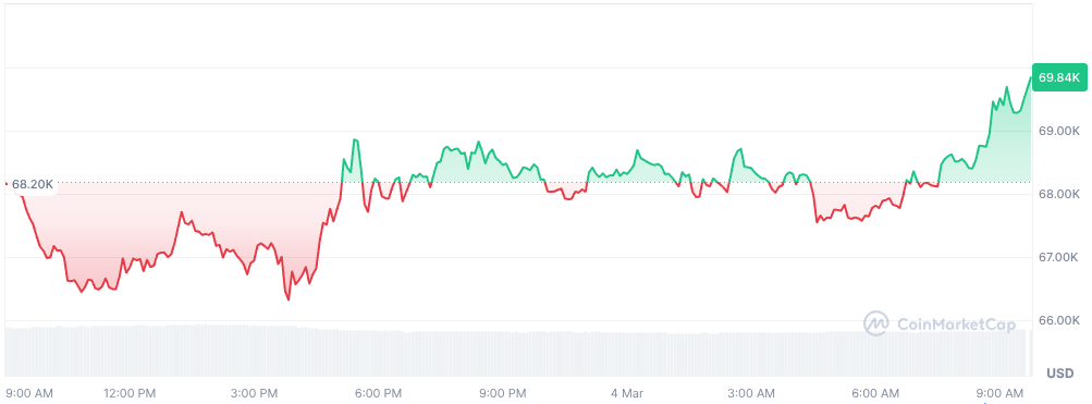 Le cours du BTC a de nouveau buté sur la barrière symbolique des 70 000 $, après deux tentatives infructueuses en une semaine. Ce seuil agit comme une véritable muraille psychologique, déclenchant une volatilité rarement observée depuis 2022. Entre prises de bénéfices rapides et marchés déroutés par les tensions géopolitiques, la petite pièce orange semble coincée dans un bras de fer entre vendeurs épuisés et acheteurs en quête de confirmation.
