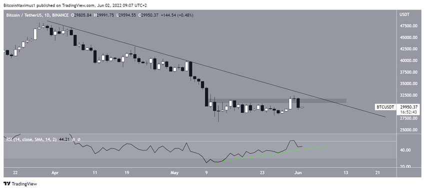 Le 31 mai, Bitcoin (BTC) a atteint un sommet de 32 399 $ mais a rechuté le même jour, repassant sous la barre des 30 000 $.