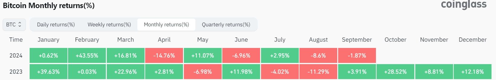 L’année 2024 avait pourtant très bien commencée pour la plus haute capitalisation boursière. En effet, puisque le jeton a connu une hausse impressionnante au cours des premiers mois de l’année. Après une fin d’année exemplaire (4 mois consécutifs de hausse), le début d’année a été plus que convainquant pour le BTC avec trois mois de suite dans le vert.