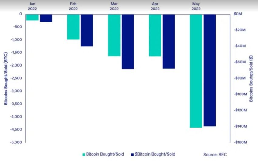 En mai 2022, les sociétés de minage cotées en bourse ont vendu 4 411 BTC, un chiffre quatre fois supérieur à la moyenne de janvier à avril 2022. C’est du moins ce que révèlent les documents financiers envoyés aux autorités de régulation.