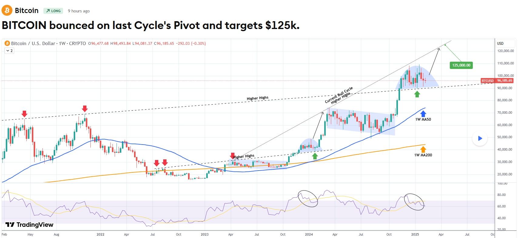 Selon les dires de l’analyste, ce mouvement pourrait se concrétiser potentiellement dès cette semaine et donc viser les 125 000 $. Cela représenterait une hausse de 30,48 % par rapport au prix actuel.