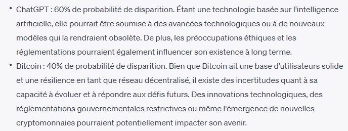 Morale de l’histoire : ChatGPT nous annonce sa défaite face à Bitcoin.