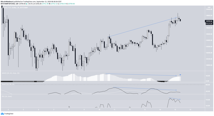 De plus, le niveau fibonacci de la vague 3 (en orange) se trouve à 10 951$, ce qui nous donne une confluence fibonacci pour le sommet actuel.