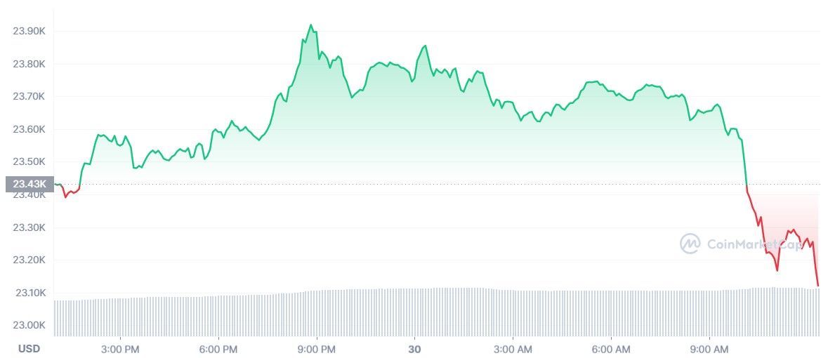 Malgré cela, le cours Bitcoin s’est remis à plonger ce matin. À l’heure de la rédaction de cet article, la cryptomonnaie capitalisant plusieurs centaines de milliards de dollars a déjà perdu 1,5 % de sa valeur pour rechuter à 23 100 dollars.