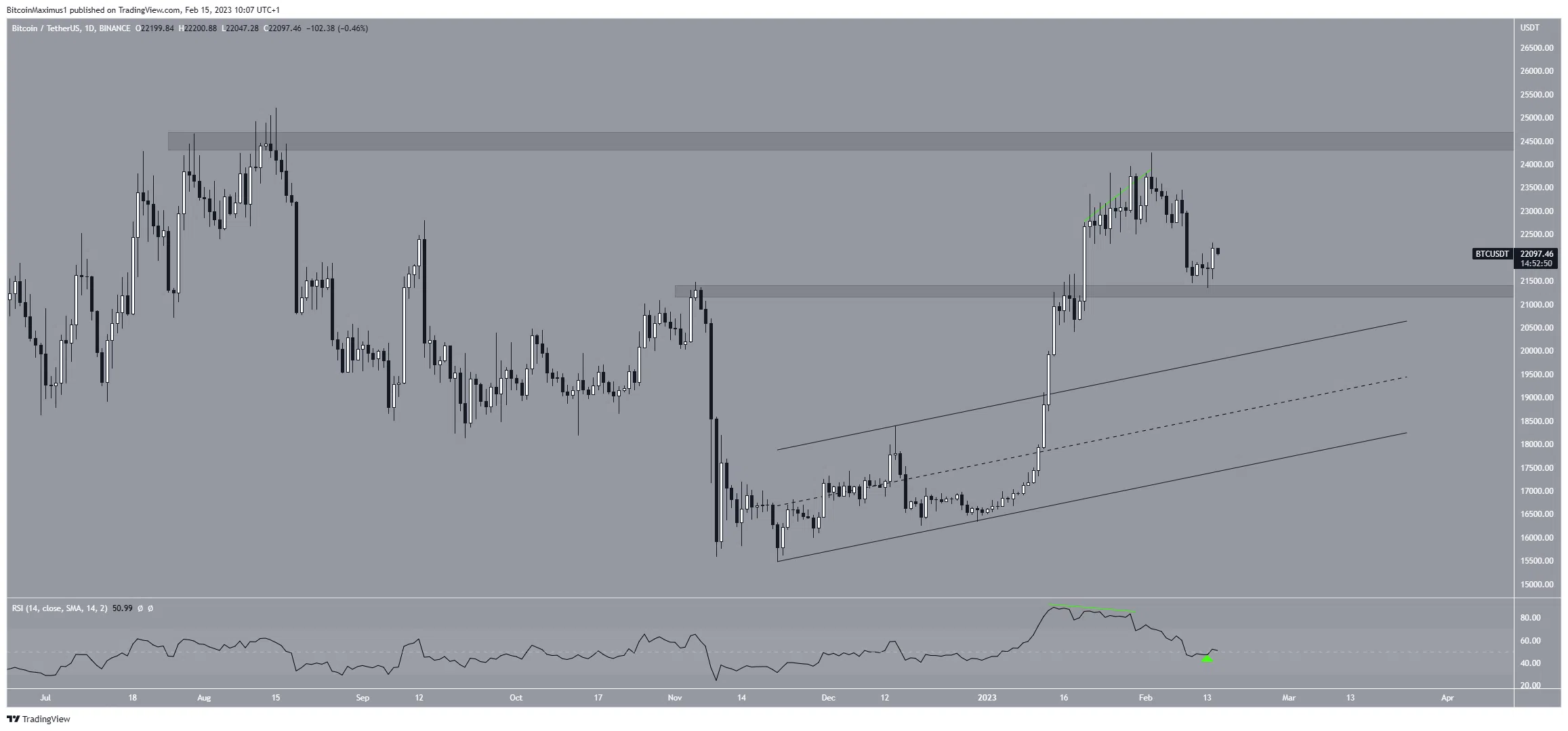 Malgré des perspectives clairement haussières pour les données hebdomadaires, les données sur la journées s’avèrent plus mitigées. En effet, bien que Bitcoin ait dépassé un canal parallèle ascendant, il a perdu de son élan vers la fin janvier. Par la suite, le RSI a même généré une divegence baissière.