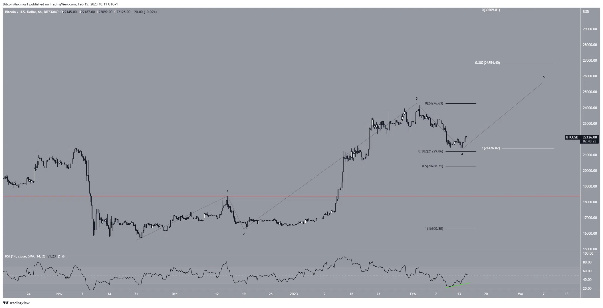 Cela dit, on ne peut pas dire si la vague quatre est déjà terminée ou si le cours Bitcoin déclinera jusqu’au support du retracement 0,5 de Fibonacci situé à 20 288 $. Dans le cas de cette seconde éventualité, les objectifs vont également décliner légèrement. Au contraire, si le BTC dépasse sa résistance, il pourrait atteindre ses objectifs en l’espace de 24 heures.