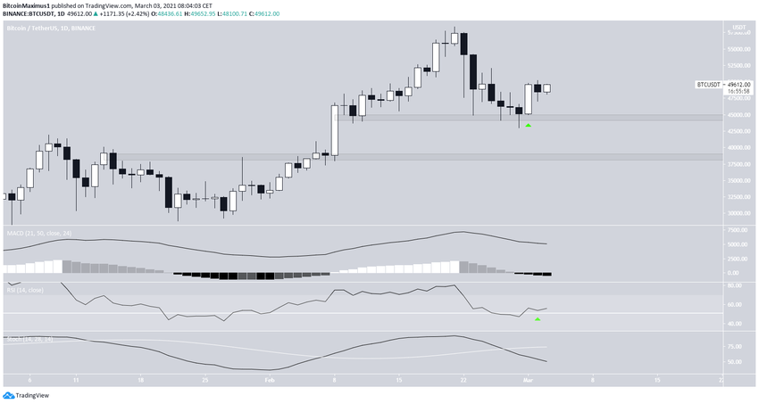 Le 3 mars, le cours de Bitcoin (BTC) a rebondi à la zone de support des 47 500$. Il vise actuellement à dépasser la zone de résistance située entre 50 650$ et 52 450$.