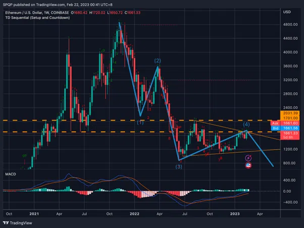 De son côté, Ethereum a toujours du mal à briser sa résistance de 1700 $ à 2030 $. À moins que l’actif dépasse ce niveau, le décompte final des vagues reste toujours valable.
