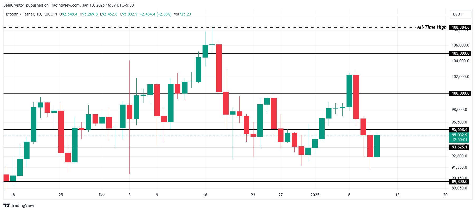 Inversement, l’objectif immédiat pour le Bitcoin est de franchir le niveau de résistance situé à 95 668 $. C’est ce niveau qui pourrait redonner de la force à l’actif afin de dépasser les 100 000 $. Atteindre une telle marque devrait lui permettre de complètement se relancer.