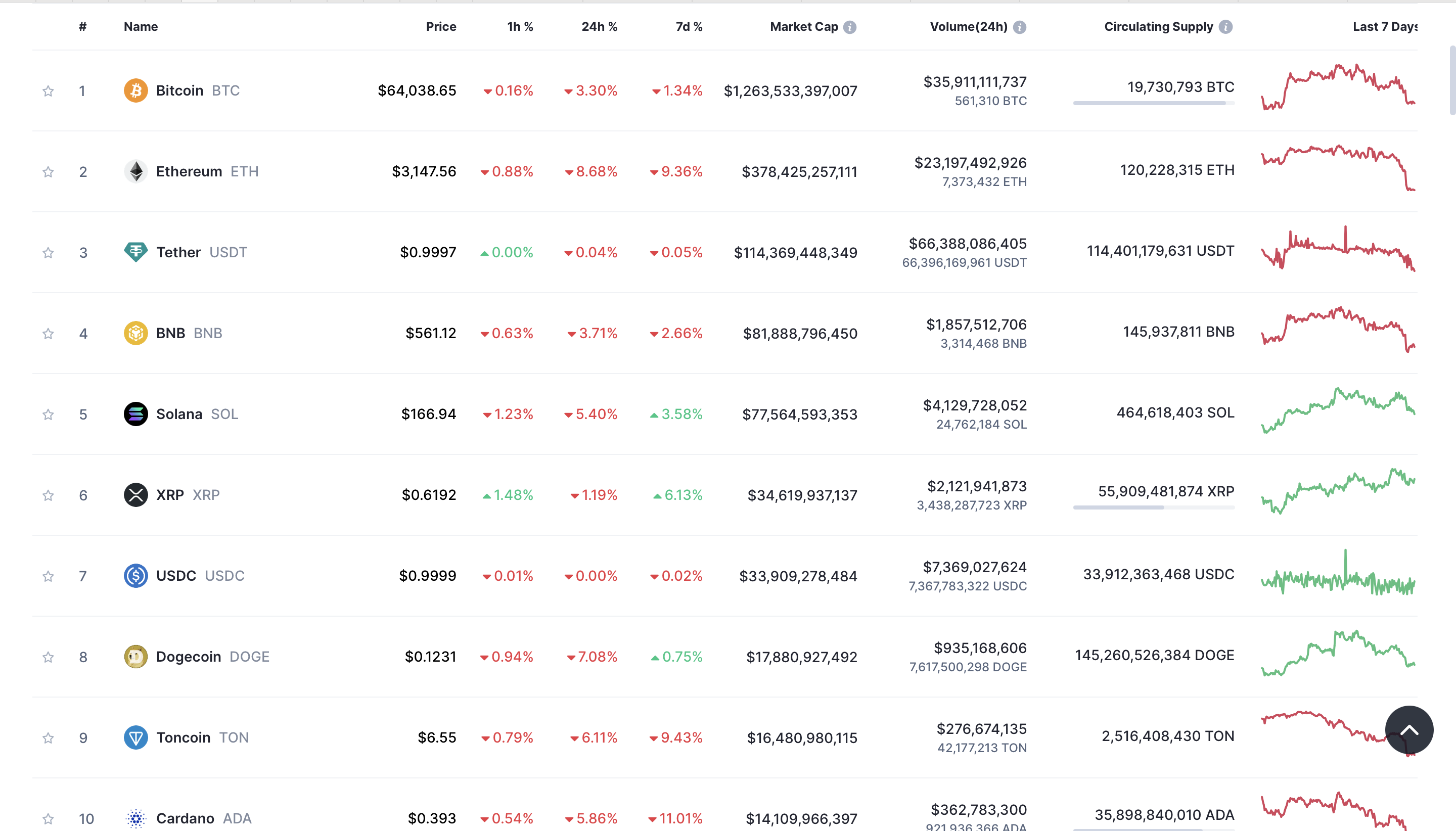 Après deux semaines de hausse, le marché des cryptomonnaies retombe dans ses travers habituels depuis la fin du mois d’avril. Le cours du Bitcoin perd la fameuse barre des 65 000 $, chutant à 64 209 $ après une baisse de 3,81 % sur les dernières 24 heures. La correction a été encore plus sévère pour l’Ethereum, dont le prix a dégringolé de 8,89 % sur la même période. Aucune des principales cryptomonnaies du top 20 n’a échappé à cette baisse du 25 juillet.