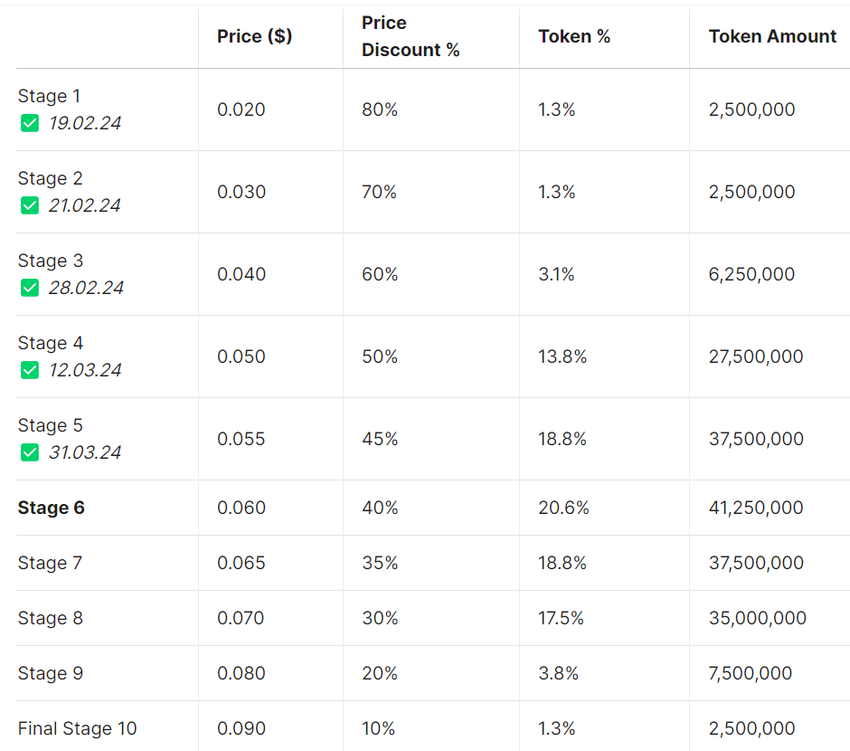 Actuellement, le token $BLP est dans sa phase de prévente, laquelle devrait se terminer courant mai 2024. Elle sera suivie d’un événement de génération de jetons (TGE) durant le deuxième trimestre de l’année 2024. Le jeton BLP a été déployé sur le réseau principal de Blast au début du mois de mars, préparant ainsi le terrain pour sa distribution et son utilisation prochaine.