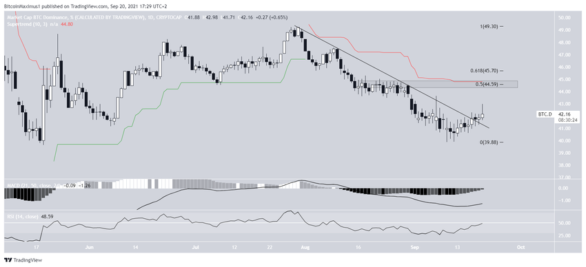 Le graphique quotidien du 20 septembre montre que le BTCD a dépassé une ligne de résistance descendante après le rebond susmentionné.