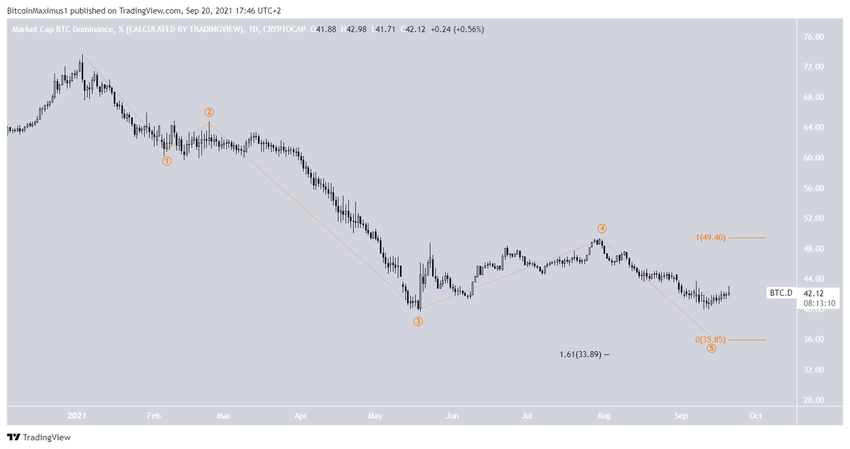 Cela mènerait à un nouveau plancher record du BTCD, après quoi il serait probable qu’il affiche un mouvement de hausse considérable.