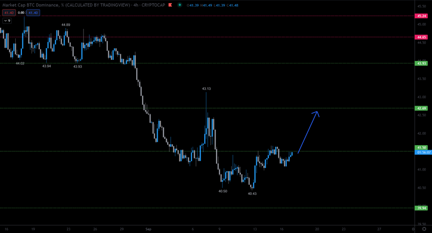 Le crypto-trader @TradingTank a partagé un graphique du BTCD, affirmant qu’un mouvement ascendant de court terme vers au moins 42,5% serait probable.