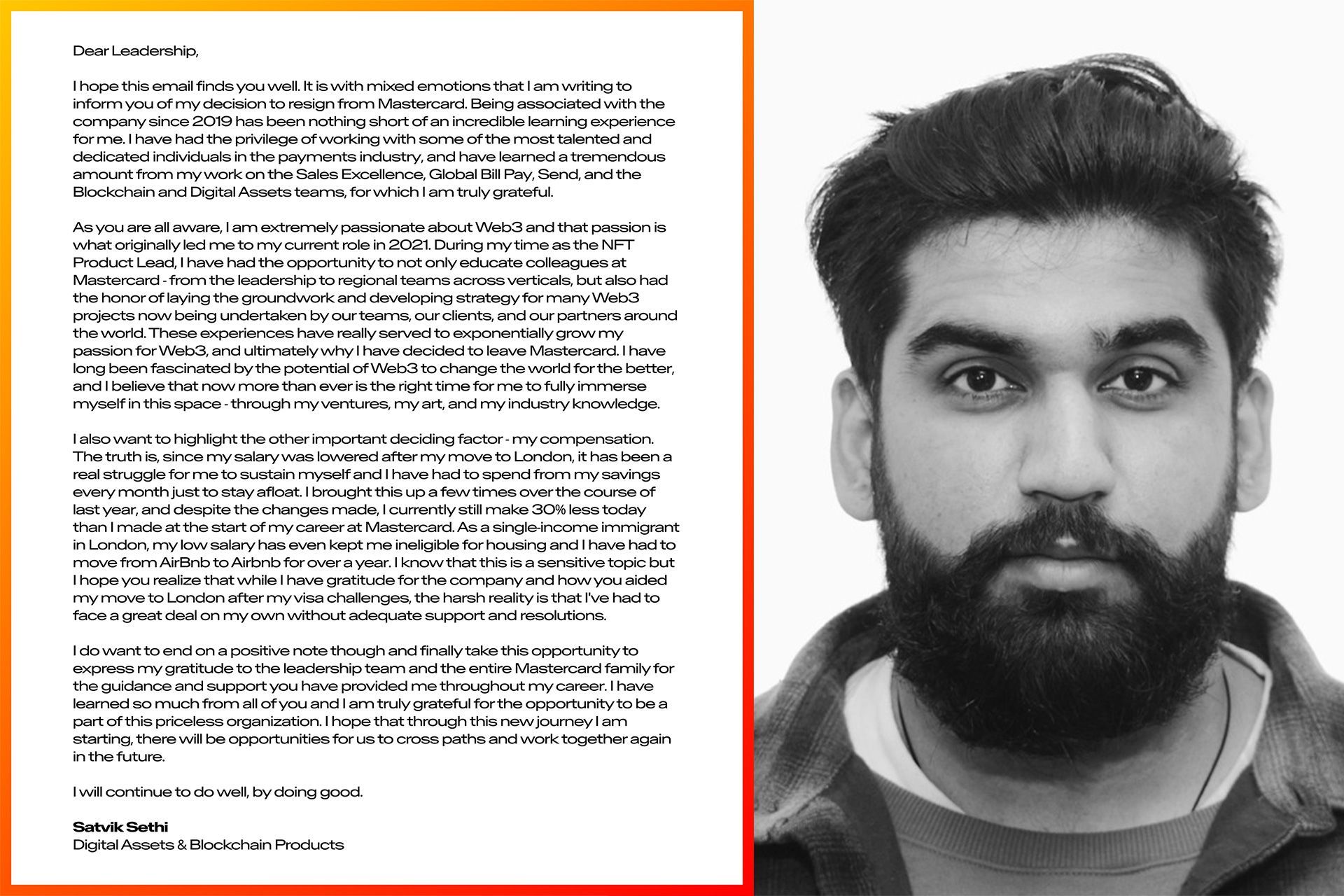 SponsoredPourquoi cette démarche ? Tout simplement parce que le principal intéressé souhaite dénoncer publiquement ses conditions de travail chez Mastercard. Dans une publication Twitter, Satvik Sethi explique qu’il a été victime de harcèlement au sein de l’entreprise et qu’il souhaite que cette révélation fasse réfléchir la direction.