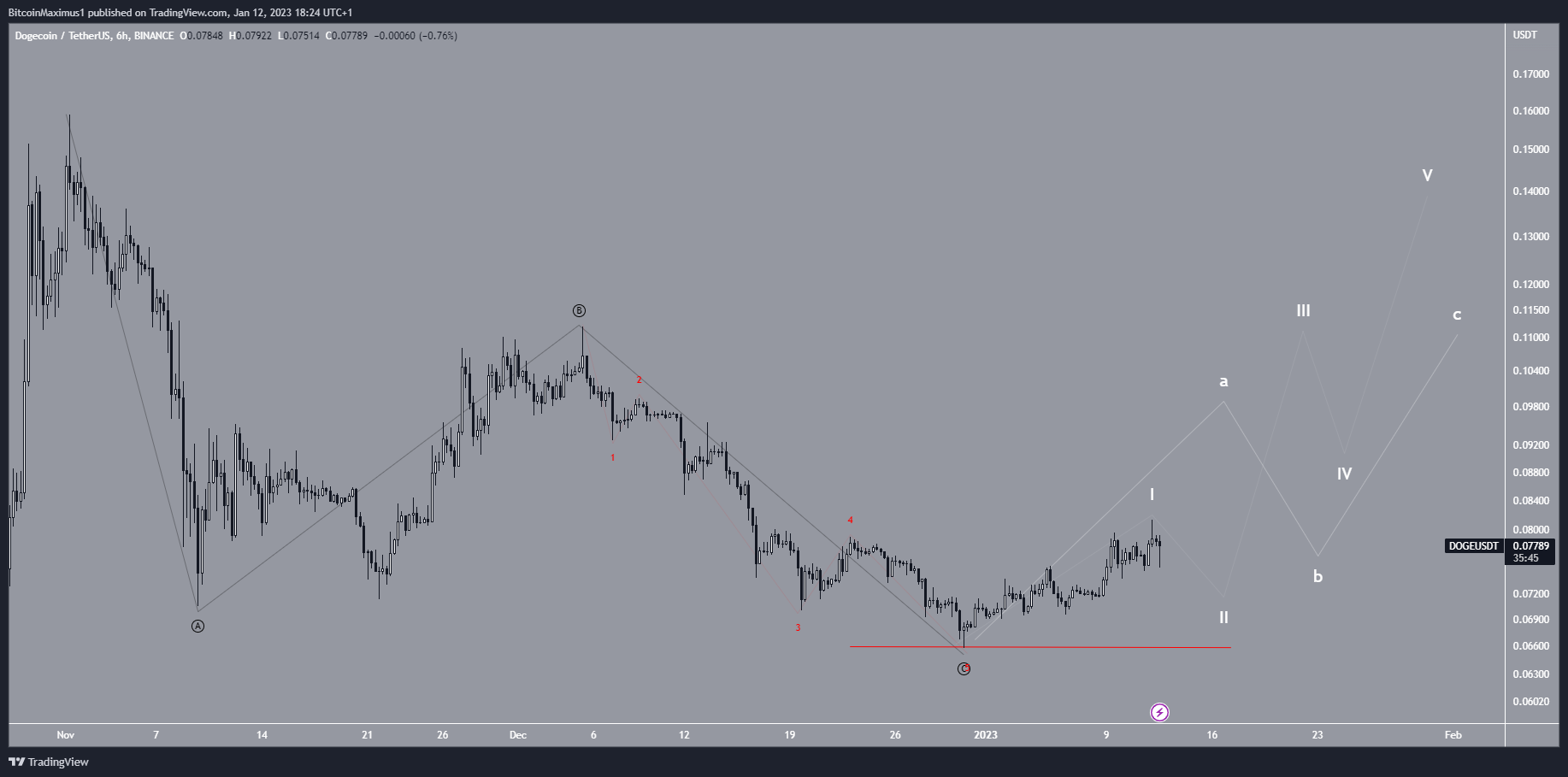 Dans ce cas, le Dogecoin aurait maintenant entamé un nouveau mouvement de hausse. Il n’est pas clair, cependant, si sa hausse fait partie d’une structure en A-B-C ou d’une nouvelle impulsion haussière. Cela dit, l’une ou l’autre impliquerait qu’un important mouvement de hausse va suivre, et qui devrait mener au moins jusqu’à la résistance de 0,108 $.