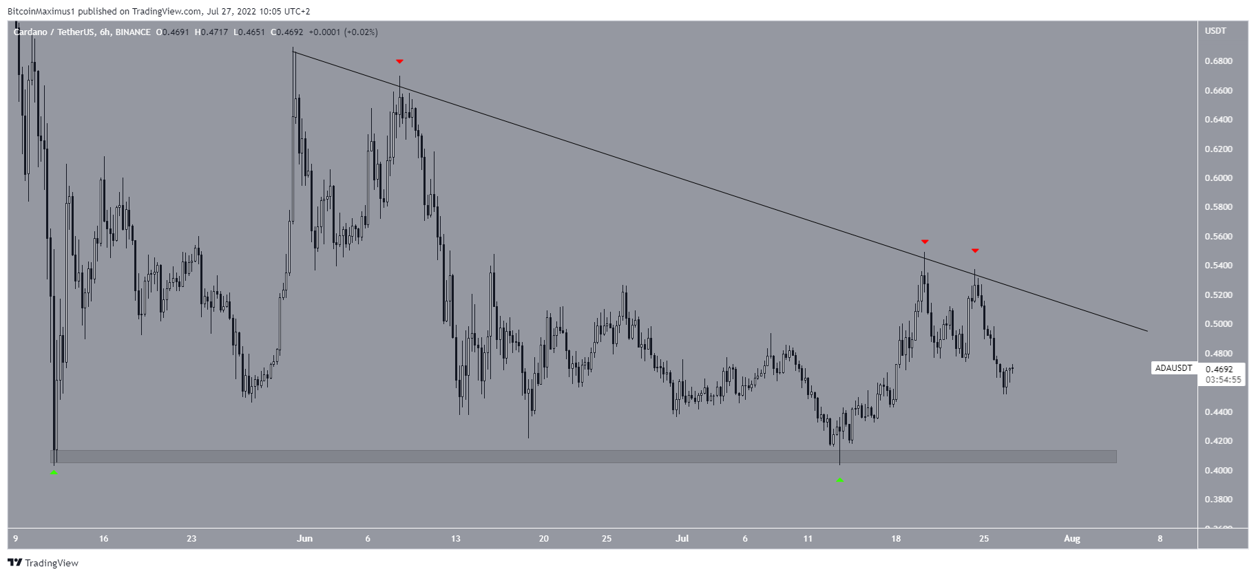 L’ADA évolue à la baisse depuis son sommet record de 3,10 $ atteint en août 2021. Le mouvement de déclin a jusque-là mené à un creux de 0,40 $ en mai 2022.