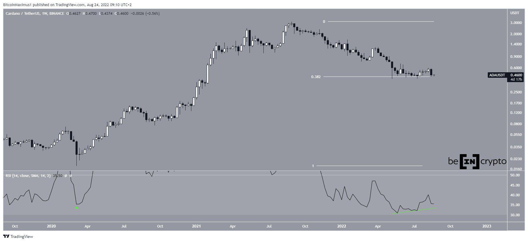 Bien que le cours de Cardano (ADA) montre des signes haussiers au sein des données hebdomadaires, il évolue dans un schéma neutre ayant un RSI quotidien baissier.